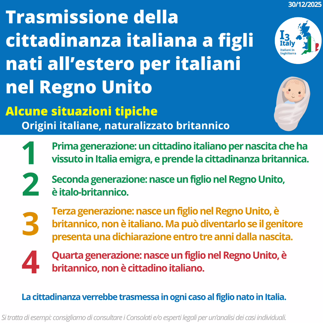 Questo articolo si riferisce alle regole più aggiornate in vigore in seguito all’entrata in vigore della Legge n.74/2025 che ha convertito, con modificazioni, il Decreto Legge 28 marzo 2025 n.36. Questo articolo ha un focus sugli italiani nel Regno Unito: pertanto, alcune delle affermazioni ivi contenute potrebbero implicitamente omettere informazioni o discriminanti rilevanti per altri paesi. Questo articolo non fornisce consigli legali e ha finalità illustrativa.